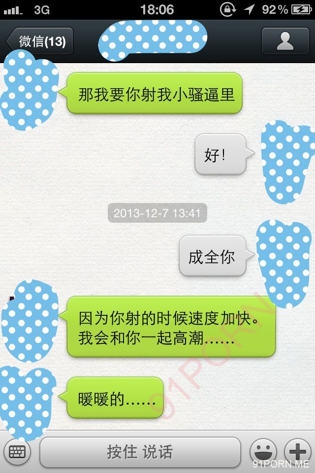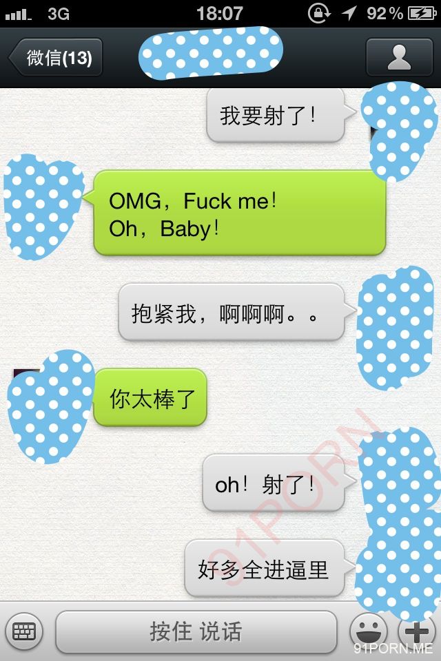 闲话少说,上次足球宝贝的续集内容在硬盘修好后我还在整理,没那么快。本季就先上一段最近无聊跟她微信调情的内容让大家娱乐娱乐罢。