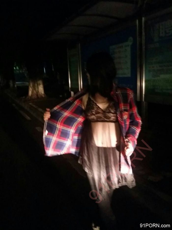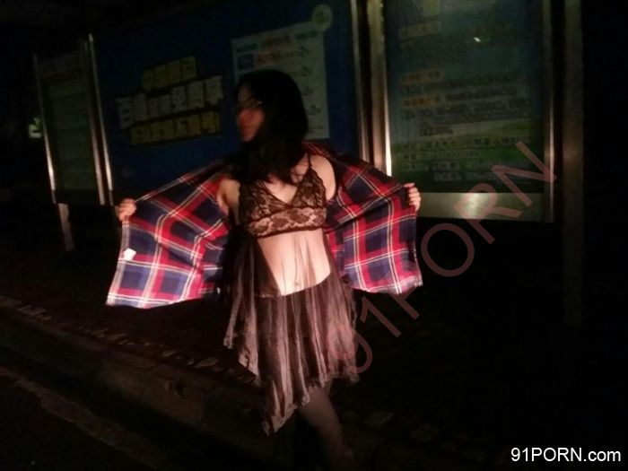 不够大胆,直接露出大白屁股站在公交站牌对着马路