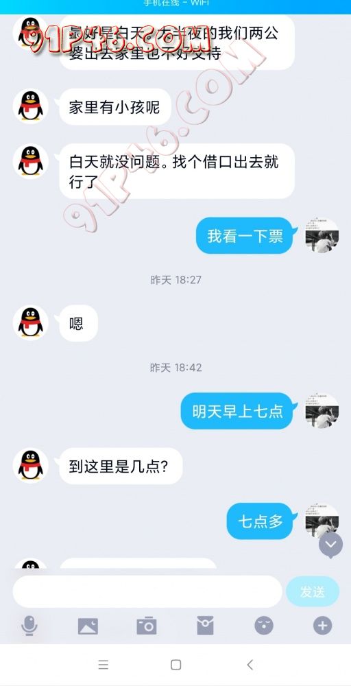 昨天中午12点左右,大哥加了我的联系方式,然后断断续续的聊了一下午,通过了解得知,大哥大嫂87年的,他们夫妻十几岁的时候就认识,然后一路走来十几年,也是觉得日子平淡如水,再加上大哥也有轻微的淫妻癖,前前后后也花了好多精力开发嫂子,现在开发的差不多了,想找一个靠谱的单男活动一次,体验一下感觉。。