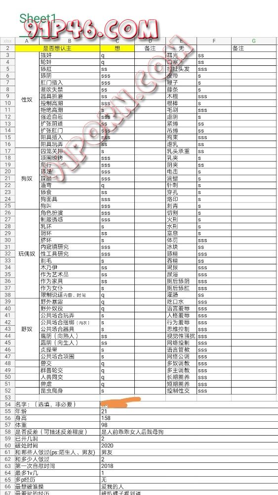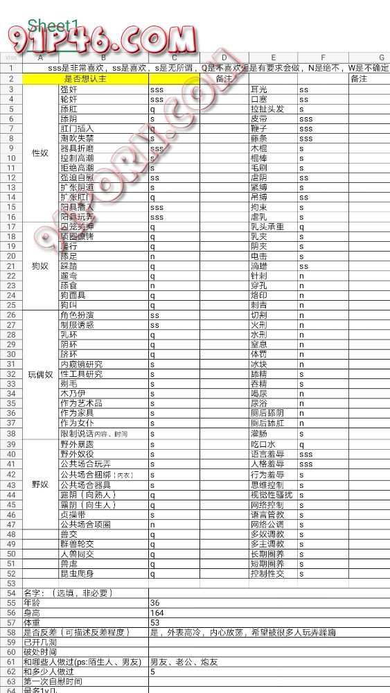 自我评价绝对不是什么大神级别的,喜压迫命令、羞辱、控制、K9、露出、强制等,关于调教是循序渐进的过程没有什么一定可以也没有什么一定可以,调教是双方的,不是单方面的,我更认为调教是M支配S在一定条件下行使权利。目前做教育行业。调教是一种更纯洁更信任的关系,一个女人把自己的意识思想和身体毫无保留的交给你,这是多么奇妙的事情。很久以前接触调教,网上搜各种知识点,看视频学别人是怎么玩的,以为知道打屁股,知道虐就可以调教了。现在又有多人精虫上脑的男人认为调教就是骂脏话天天嘴上喊着母狗,贱~。又有多少无知少女人妻因为内心的欲望莫名其妙的就被用调教骗了炮呢。其实调教挺难的,到底调教的是什么呢,调教是一个矛盾的过程,有矛盾冲突才会有刺激,你想被控制,被控制和你内心的常规认知是矛盾的,刺激是你觉得自己怎么可以这样,疼是刺激的,疼得刺激是身体感受带来的刺激,也是你都是成年人了却被别人那么反差的对待。羞辱一定不是骂几句,我觉得行为羞辱才是羞辱,行为是对你的重新塑造,是让你的多年教育和当下的淫荡的对比,很多行为是你事后回忆都觉得羞耻的。