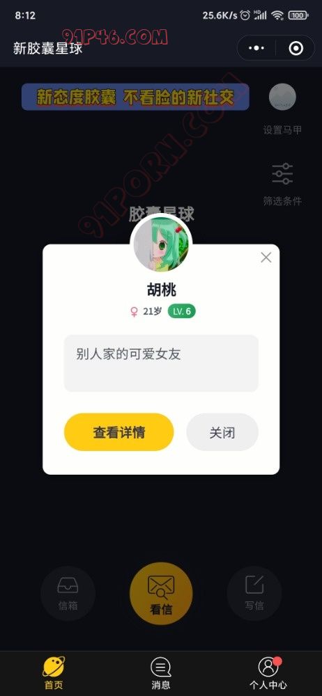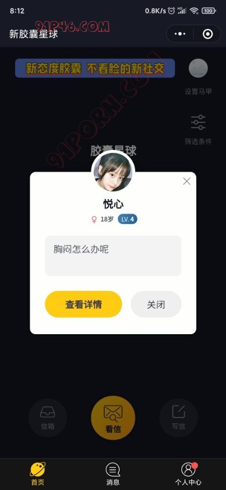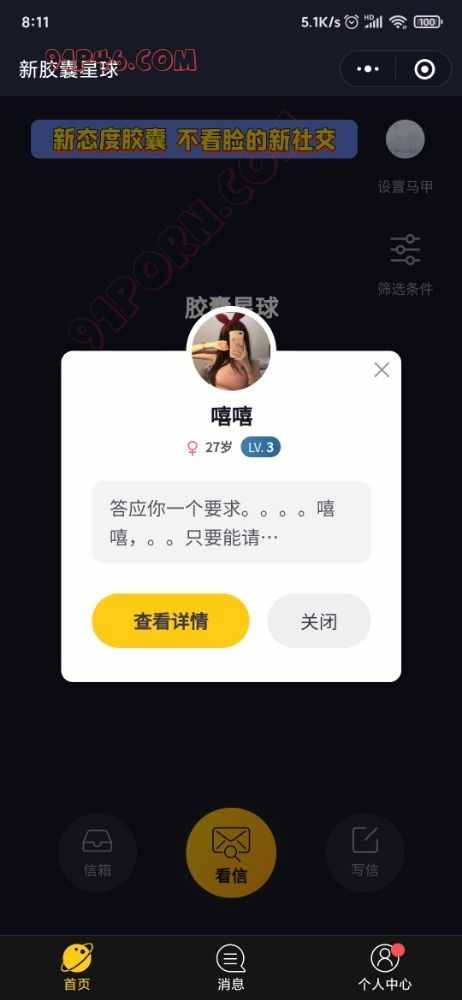 首先我没有打广告,去年都在91看到过其他老哥说这个wx小程序,字母圈的人确实多。识别登录以后点击看信,选择圈子。看不了就退出过一会再进去。你们好好研究研究怎么玩 .