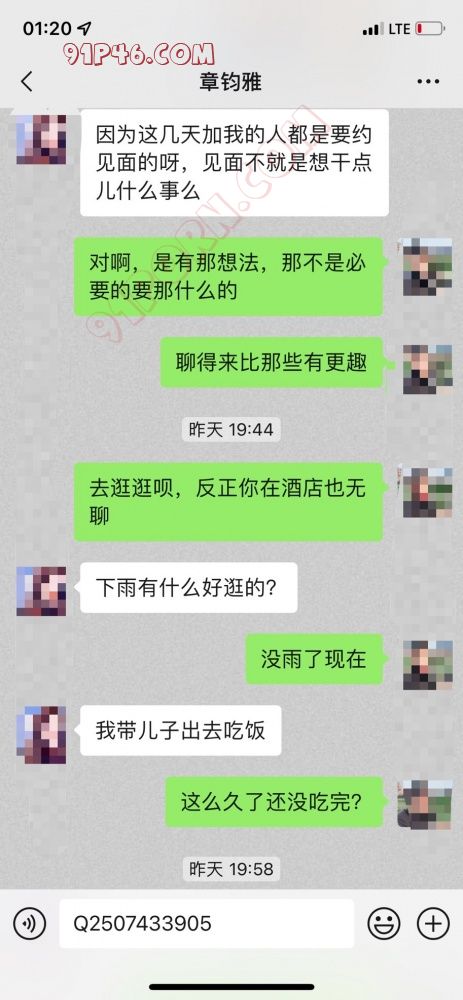 重点来了:到门口后她出来开的门,穿着件丝滑睡衣,到房间后我才发现她根本没穿内裤就下来了。而且把毛都刮干净了。进房间后我才知道原来她没和儿子睡一间,应该又开一间给儿子睡(后来想想也对,都8岁了怎么还会和母亲同床呢,那会出事情的,哈哈)我脱光我的衣裤躺床上,她就去把灯关了。我一把搂过她,双手颤抖的解着她睡衣扣,看到双乳后真的大,但乳头偏小。我先和她舌吻了一会。然后又吸上她的巨乳,嘴里还说着真大啊。她居然笑我说是不是小时候没吃饱,是不是男人都喜欢胸大的。(这还用说吗?)接着我移到下面给她舔逼,没毛就是舔得过瘾。舔了一会后我又和她舌吻上了,然后直接肉棒对准骚逼插了进去。(其实我不喜欢戴套的感觉,知道可能不安全,但只有无套我才觉得真正把这女人给上了,不知道兄弟们是不是这样)套子带了就是摆设,结果一个没用上!激战就开始了,刚开始她还不敢叫床,插几下爽后开始慢慢哼起来,到后来就大叫了。(因为她住的是家庭旅馆,美国房子隔音本来就差,我觉得旁边房间要有人的话绝对能听到这淫妇的呻吟声,不知道她儿子会不会听到他妈在隔壁被人操着)后来叫她女上继续干,她开始慢慢放开了,女上时就很用力的磨擦和深插,我正好保留体力一会再干她,双手玩弄着那对巨乳,清到深处就抬头含着乳头又吸又舔。她高潮后我们就开始中场休息。和她聊着天得知她说她是86年的。我问她来这一周约过几个男的了?她说我是第一个(我也就呵呵一信吧)本来想给她拍几张照片留念,她死活不同意,所以就作罢,那两张是我硬拍留底的。