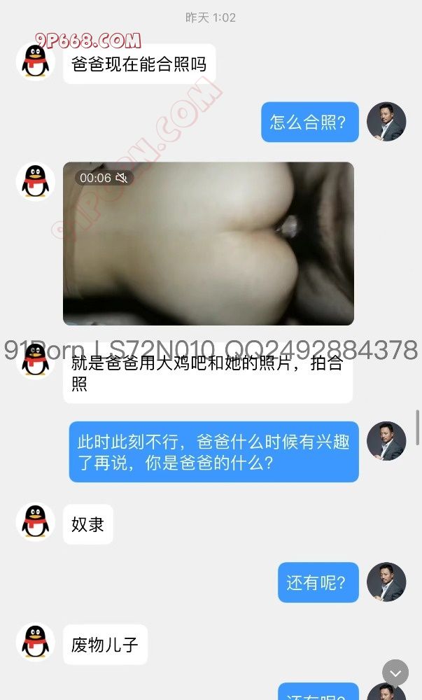 前几天发了调教绿奴的帖子之后有个下贱的北京绿奴加我,和我交流了他的家庭情况,聊天发现他家的母狗人妻身材很火辣,并且这个贱奴奴性很强,喜欢看着自己的母狗老婆被爸爸调教,喜欢自己被强烈的羞辱,也喜欢看着别的男人对着他老婆射屏,以下是聊天记录: