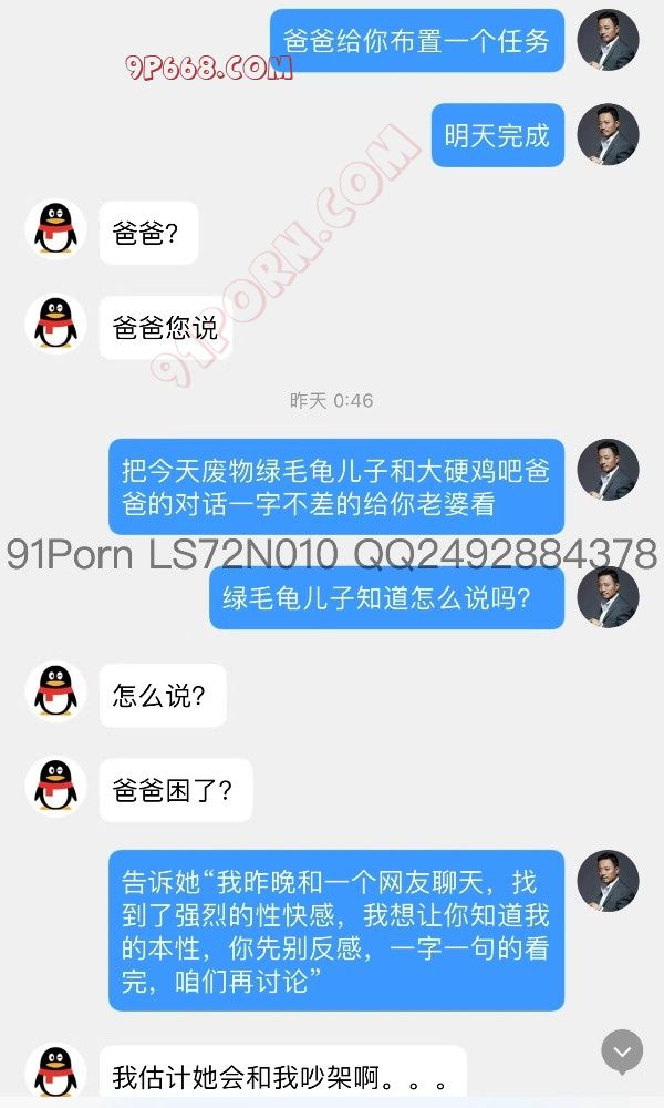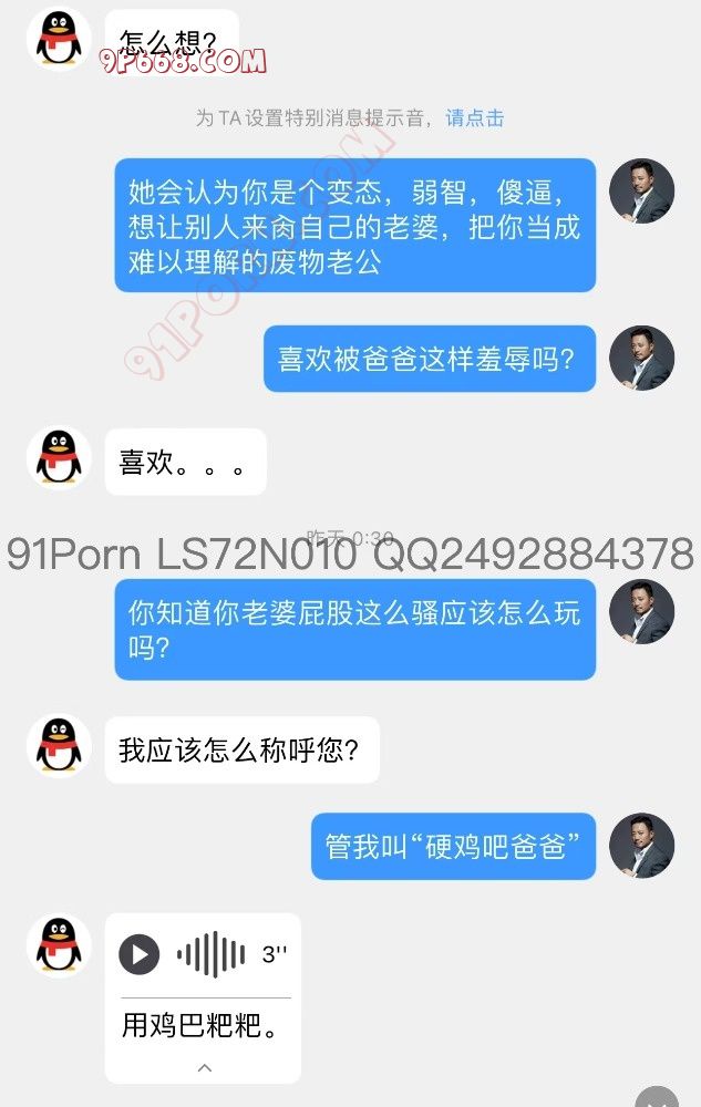前几天发了调教绿奴的帖子之后有个下贱的北京绿奴加我,和我交流了他的家庭情况,聊天发现他家的母狗人妻身材很火辣,并且这个贱奴奴性很强,喜欢看着自己的母狗老婆被爸爸调教,喜欢自己被强烈的羞辱,也喜欢看着别的男人对着他老婆射屏,以下是聊天记录: