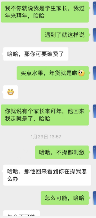 咱是雷厉风行的人,马上打车过去,到了楼下给她拍小区的照片,她都惊呆了,没想到我真的来了;扭捏,犹豫了半天,在我的游说下最后还是开车出来接我了,我说我就是个学生家长,过年给你拜年,然后去买了水果啥的