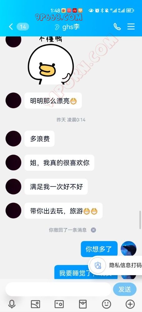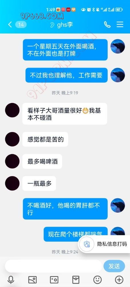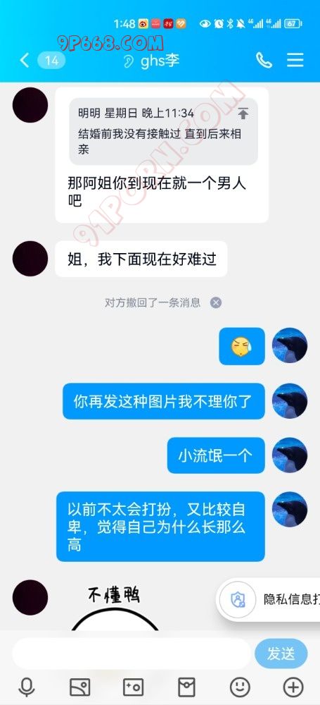 再假聊天记录中的小伙子是圈内人,对方知道现实中你们的真实身份,且知道你们玩夫妻交友,你们的安全隐私又如何得到保障。再多一句嘴,万一小伙子是圈内人,你今天帖子发布的聊天记录以及特定的人物关系,就已经在小伙子面前暴露了你们夫妻。看的出来你们是新人没有经验,女生既然和小伙子相识于现实,想必聊天号肯定是工作号而不是交友专用小号,所以她现实中的同学朋友肯定能认出她的工作号头像,建议尽快删除此贴。