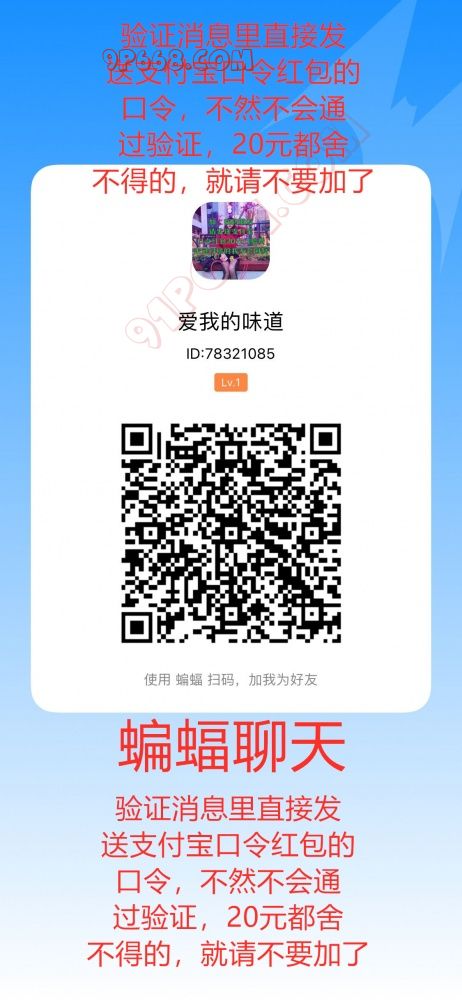 接视频1V1!不线下!扫码添加本人蝙蝠聊天号!