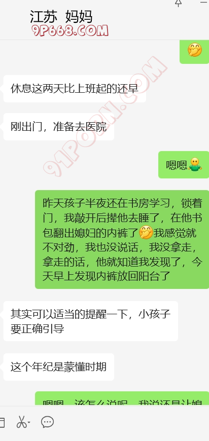 昨天晚上故意把媳妇的内裤塞在儿子书包里,拍了个照片,给江苏妈妈看,说是儿子藏里面的,哈哈,让她内心觉得儿子都这样,她还一本正经的教导我怎么跟儿子谈。