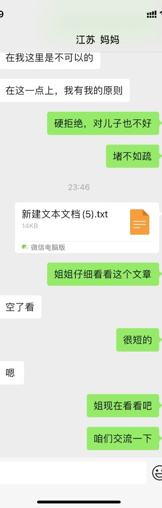 我思考了半天需不需要发出和儿子的这些聊天记录,发出来不是为了让大家批评他,是让大家看到真实的状态,了解儿子平时交际水平,更能了解我调教他妈妈的难度。