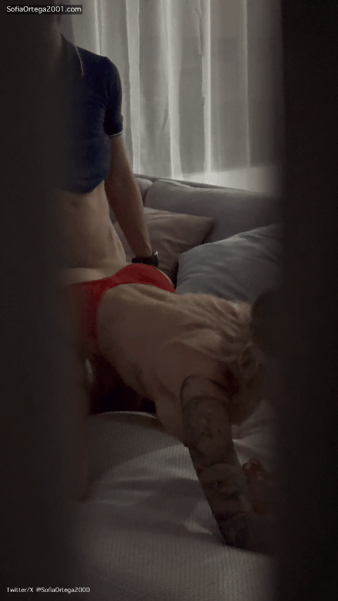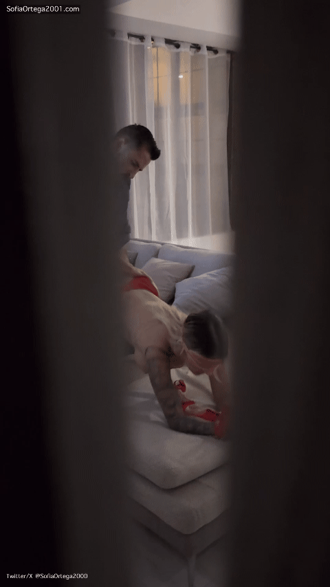 而索菲就这样跪在沙发上,好像一条母狗。