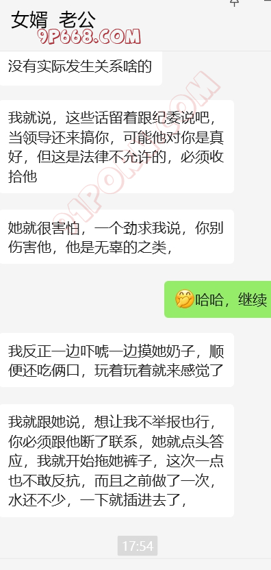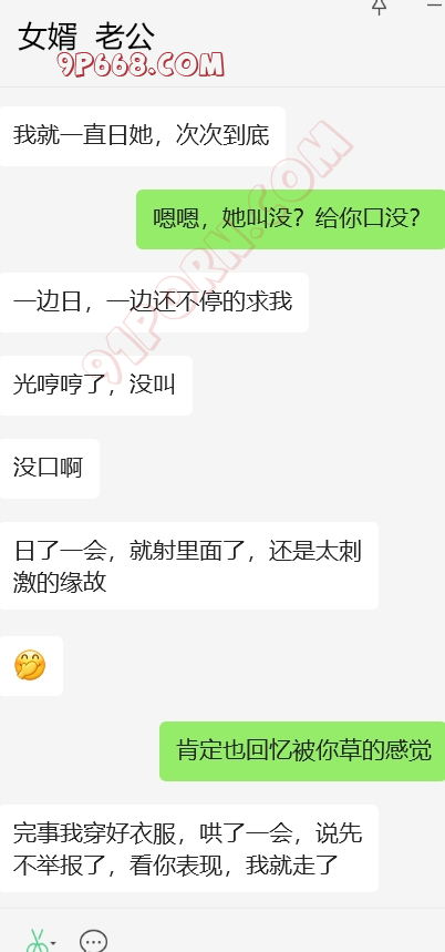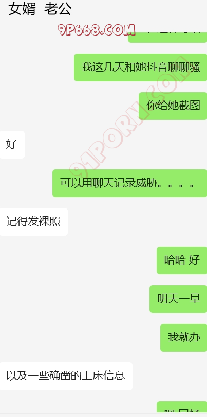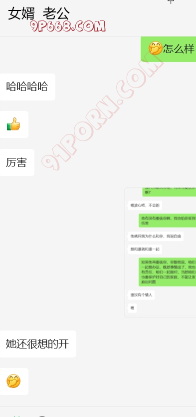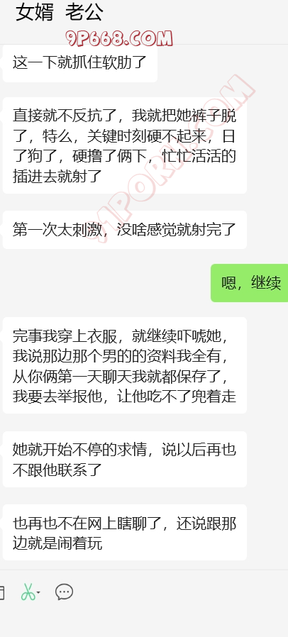 大功告成!!!!女婿很给力,岳母算是比较配合,跟我考虑的结局差不多,拿聊天记录给她看,然后威胁要伤害我,和岳母做了两次,第二次很配合。以后女婿的好日子就来临了。